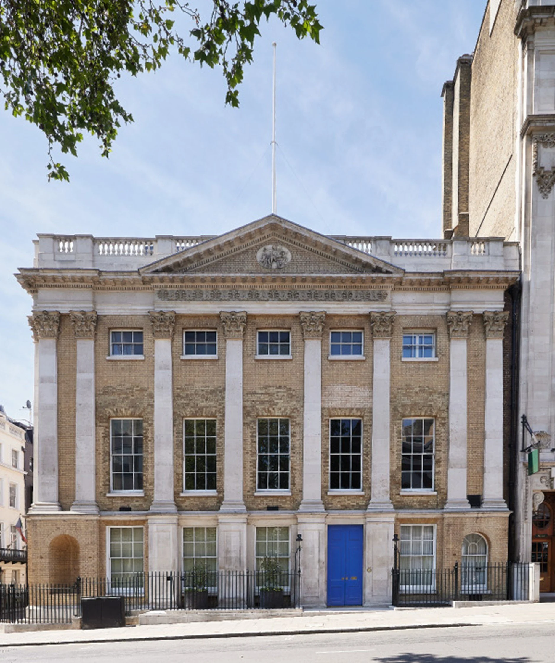 The club is housed in a mid-century Queen Anne-style building at the side of St Stephen Walbrook church in the City. ©️ Jacob Turney